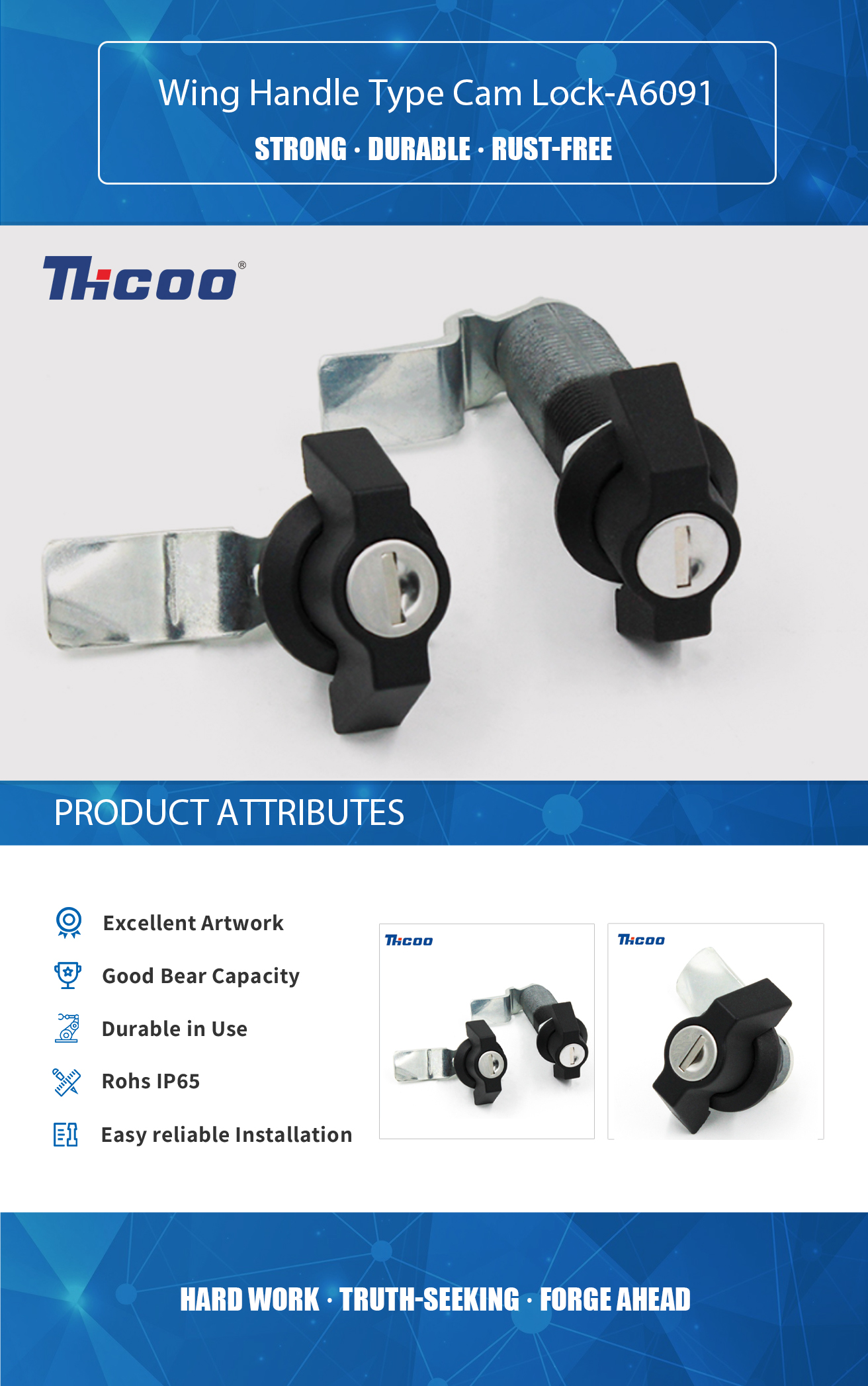 Ürünlerin kalitesini garanti edebilen kendi test laboratuvarımız ve gelişmiş ve eksiksiz denetim ekipmanımız var. Kanat Kolu Tipi Kam Kilidi-A6091, cıvata ile sağlanan bir kilit kafasıdır. Mandalın gövdesindeki eşleşen bir yuvaya uyan küçük bir çıkıntıya sahiptir. Seyahat ederken veya sadece halka açık bir yere giderken onları aracınızda bırakmanız gerektiğinde eşyalarınızı güvende tutmanın harika bir yoludur.